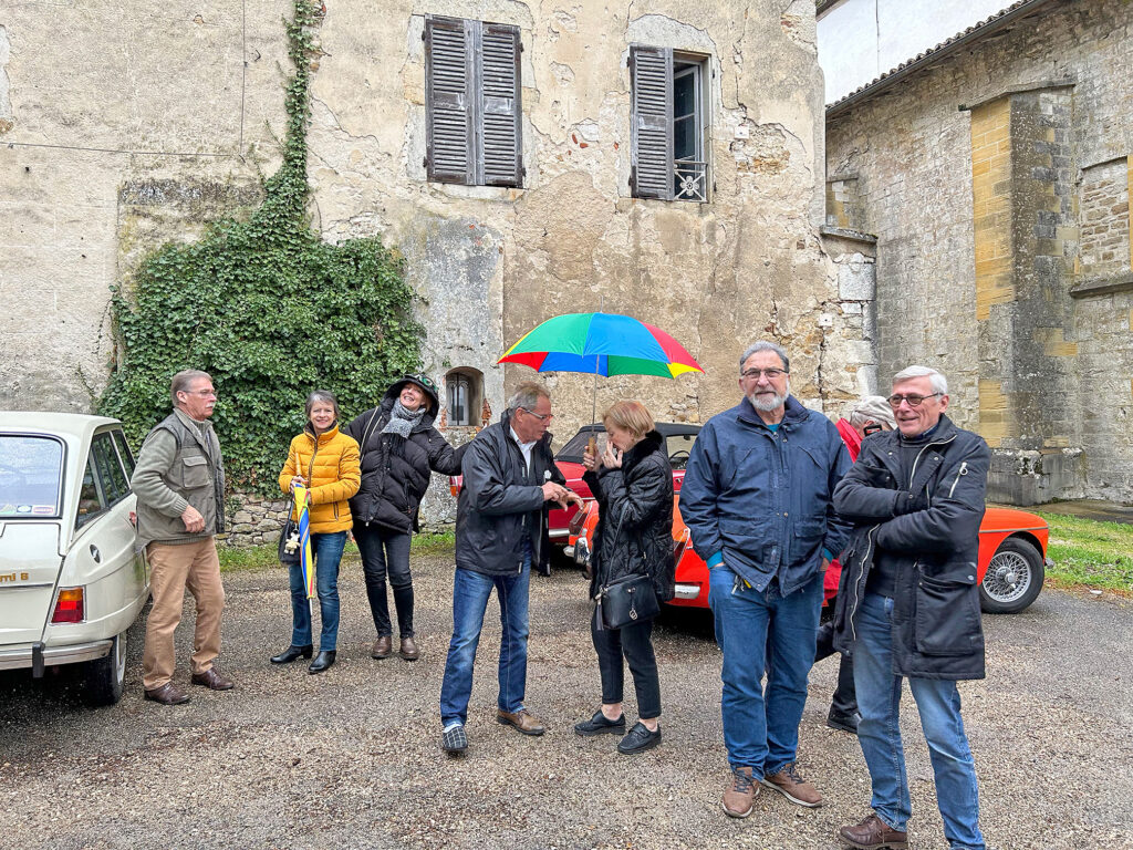 Mais il nous en faut plus que ça pour nous arrêter et nous prime le départ pour les belles routes de l’Ain. (ci-dessous la carte de notre parcours). Nous arrivons à l’abbaye d’Ambronay où nos amis de la bourgogne nous attendaient.