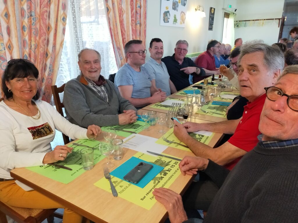 Nicolas Buisson nous a gâté avec de belles cuisses de grenouilles et du filet de poulet, un gratin dauphinois riche en crème, suivi de fromage et d’une omelette norvégienne, café et une poire très surprenante.