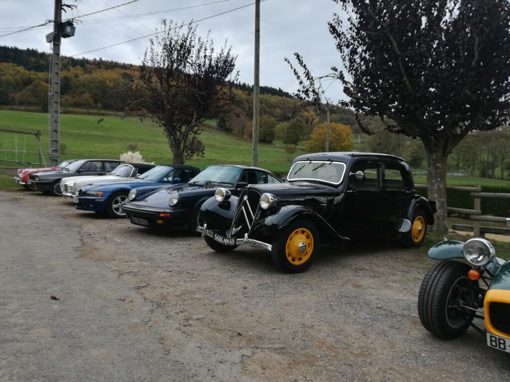 Les Monts du Lyonnais sont toujours à découvrir ; les petites routes choisies par Xavier étaient, pour beaucoup d’entre nous une vraie découverte. De plus la météo plutôt favorable en ce matin du 25/10, a permis aux cabriolets présents « d’enlever le toit » et ainsi permettre à leurs occupants de bien profiter de la palette de couleurs automnales flamboyantes que nous offre cette belle région.