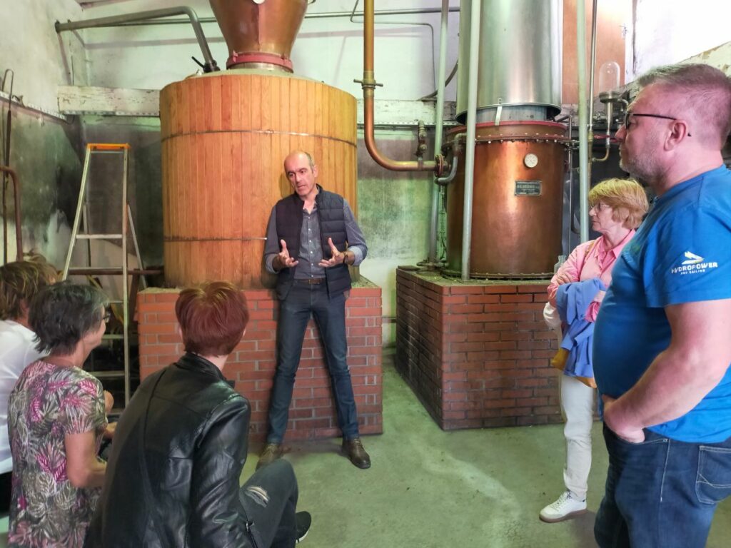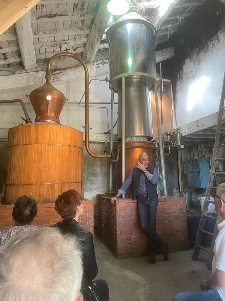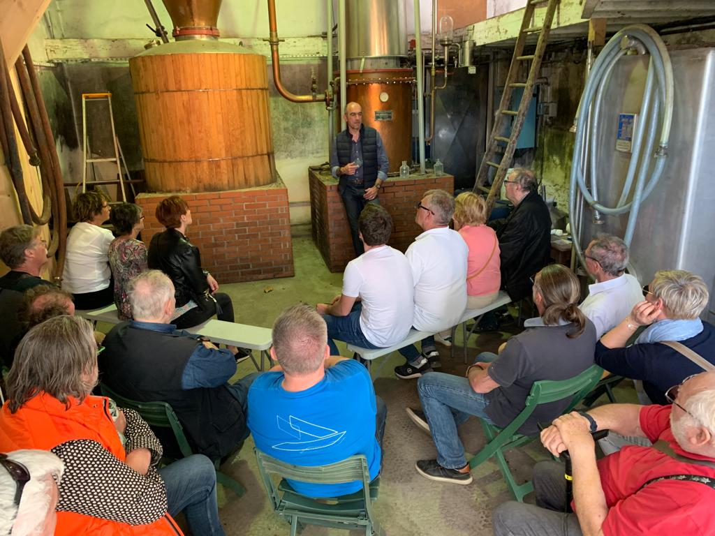 Pour clôturer cette journée, nous partîmes pour la célèbre Maison Colombier, la reine de l’eau de vie de poire. Une visite distrayante, interessante animée par un passionné de son métier qui se termina bien-sûr par une bonne dégustation.