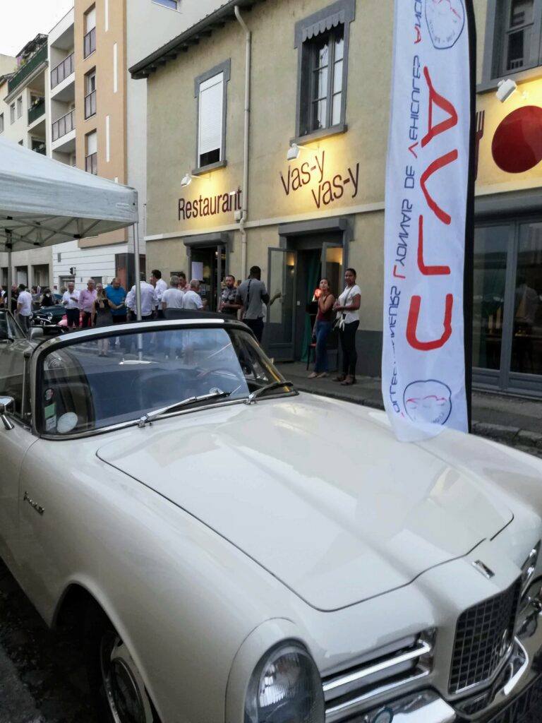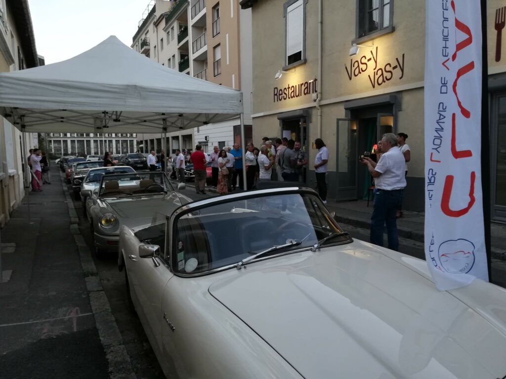 Nico, propriétaire du Restaurant Vas y Vas y rue des Verriers à Lyon, souhaitait fêter le onzième anniversaire de son restaurant, mais avec une animation choisie. Et pour ce faire il a fait appel au CLVA qui compte dans ses rangs quelques clients habituels. Une partie de la rue a été réservée pour l’exposition des voitures, un apéritif convivial a été servi abondamment et assorti de délicieux « amuse-gueules » faits maison. Un ami du patron a proposé à la dégustation, un cru Régné du Beaujolais. Un orchestre de chambre s’est ensuite installé dans la première salle du restaurant et nous a gratifié d’un répertoire classique de bon aloi. Quelques membres du CLVA ont poursuivi la soirée autour d’un repas cuisiné par le chef aux multiples talents, repas arrosé de vins de différentes couleurs ! Merci à Nico pour cette idée originale de fêter ce onzième anniversaire en nous invitant à exposer quelques unes de nos voitures et un grand merci pour le don de 100 euros au CLVA. Ont participé à cette exposition et en sont chaleureusement remerciés ; Philippe Crapanzano, Thierry Piegay, Christian Gérardin, Philippe Rivoire, Jeannot Crotta, Xavier Guibard, Philippe Boucher, Gilles Maurin, Marc Guignard et Michel Dubreuil